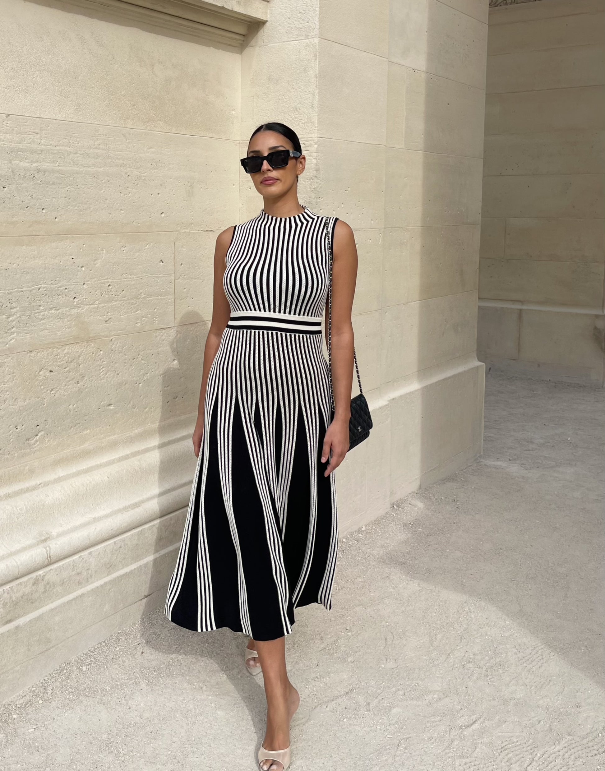 Sophistiquée et intemporelle, avec son contraste noir et blanc qui sublime la silhouette. Une pièce chic, parfaite pour vos soirées et occasions spéciales.
